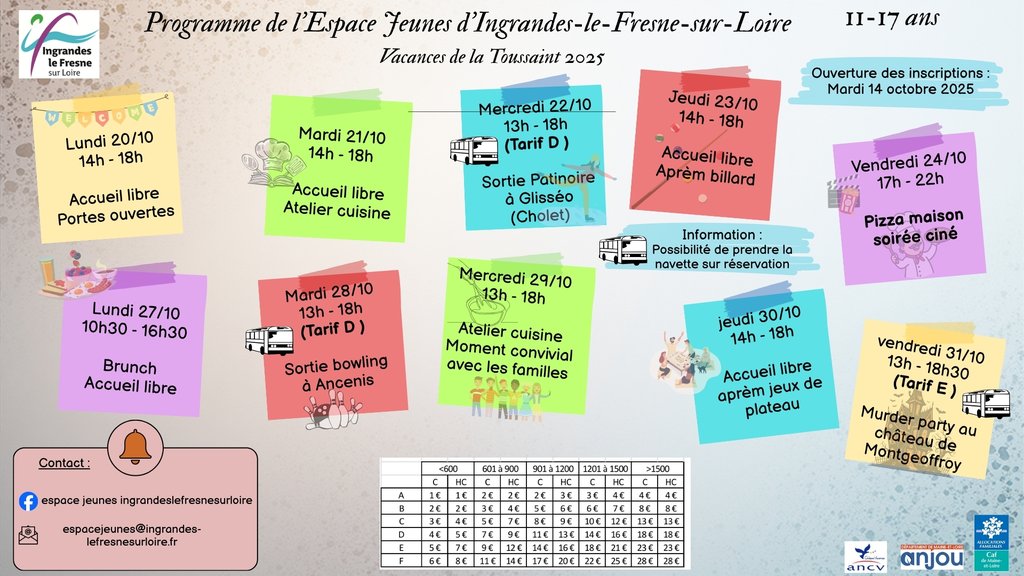 ESPACE JEUNES : LE PLANNING DES VACANCES DE LA TOUSSAINT EST DISPONIBLE đ