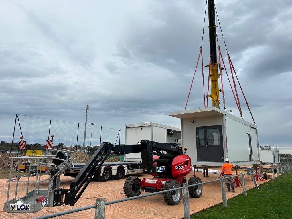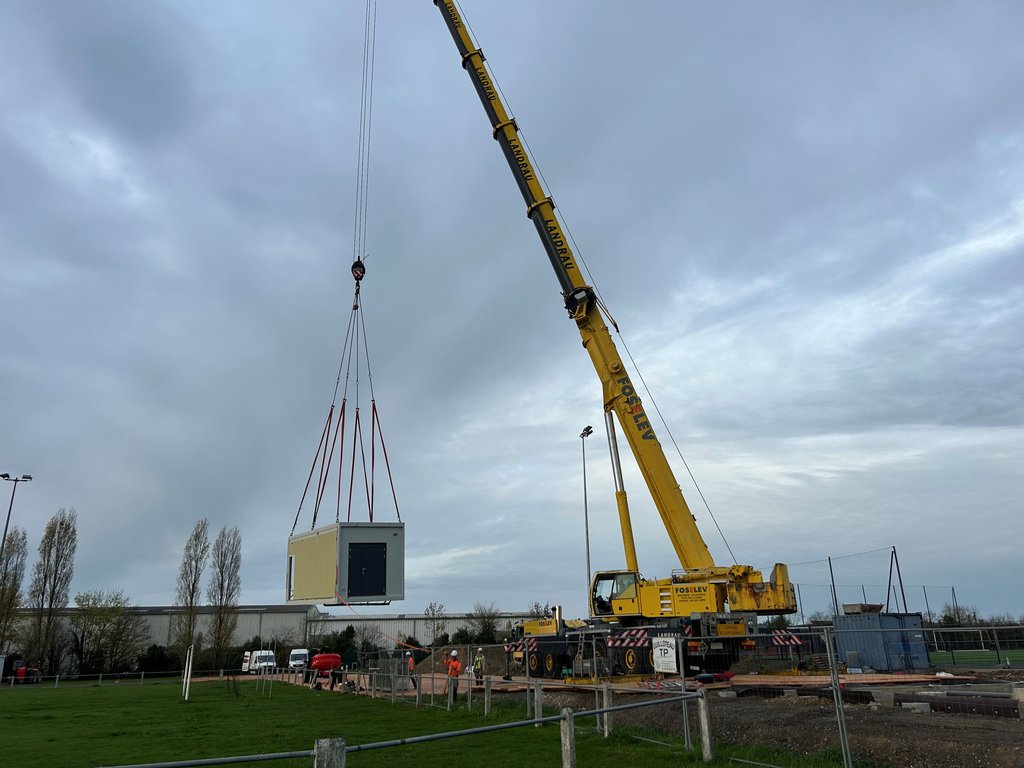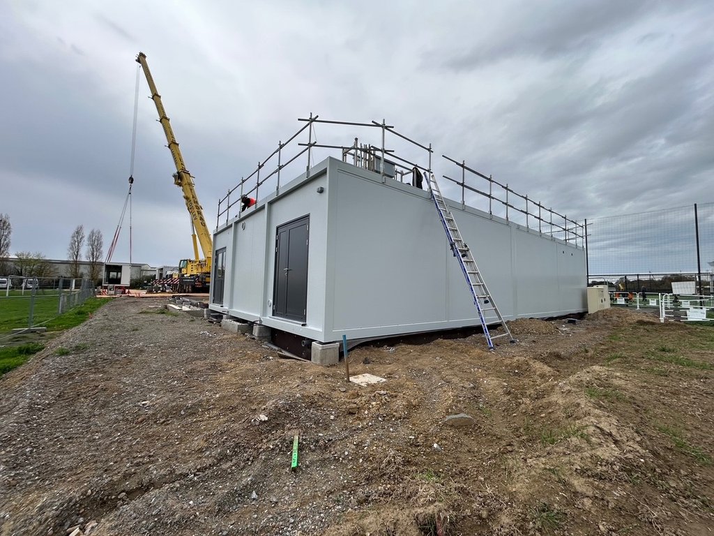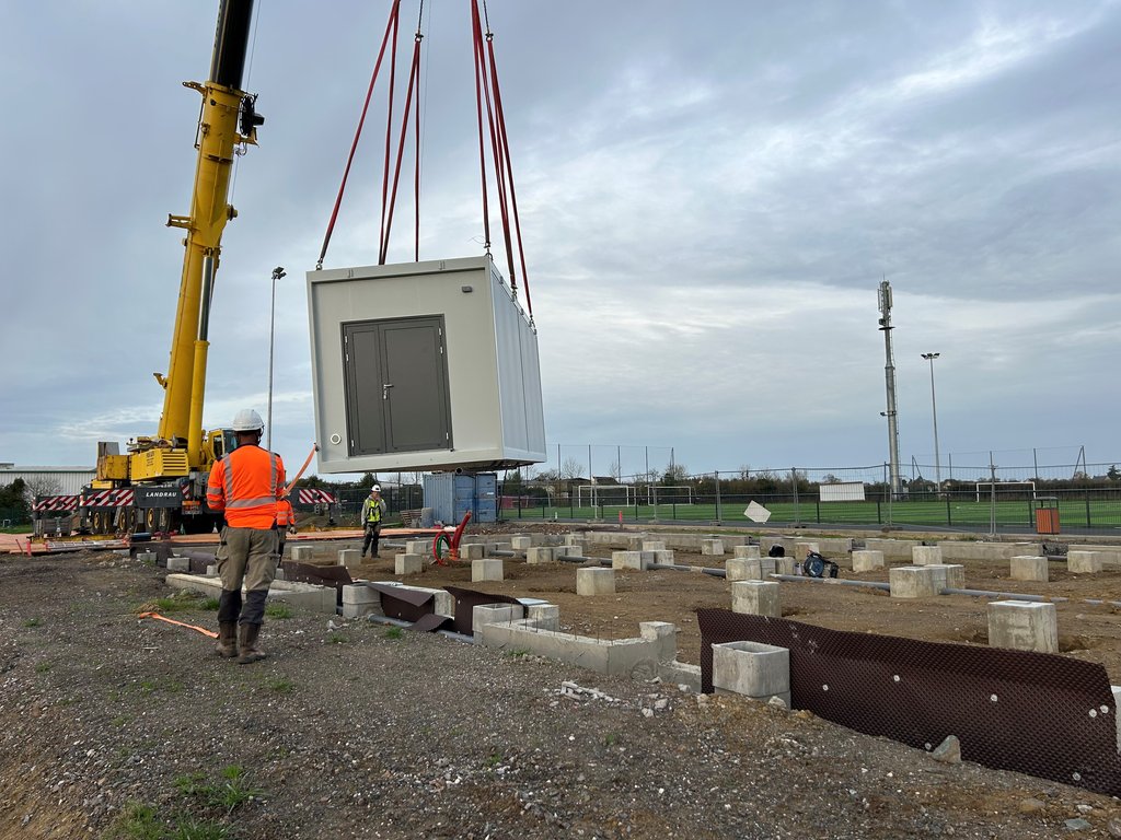 🏟️ PLAINE SPORTIVE : LA POSE DES VESTIAIRES MODULAIRES A COMMENCÉ !