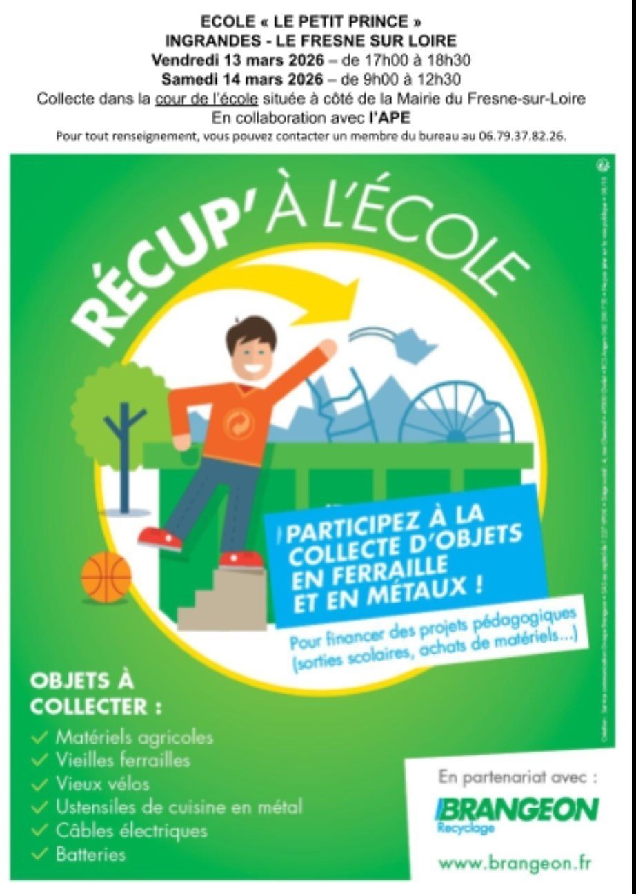 l’APE de l’école Le Petit Prince, en partenariat avec le Groupe Brangeon, organise une collecte de métaux pour financer les sorties et projets des enfants