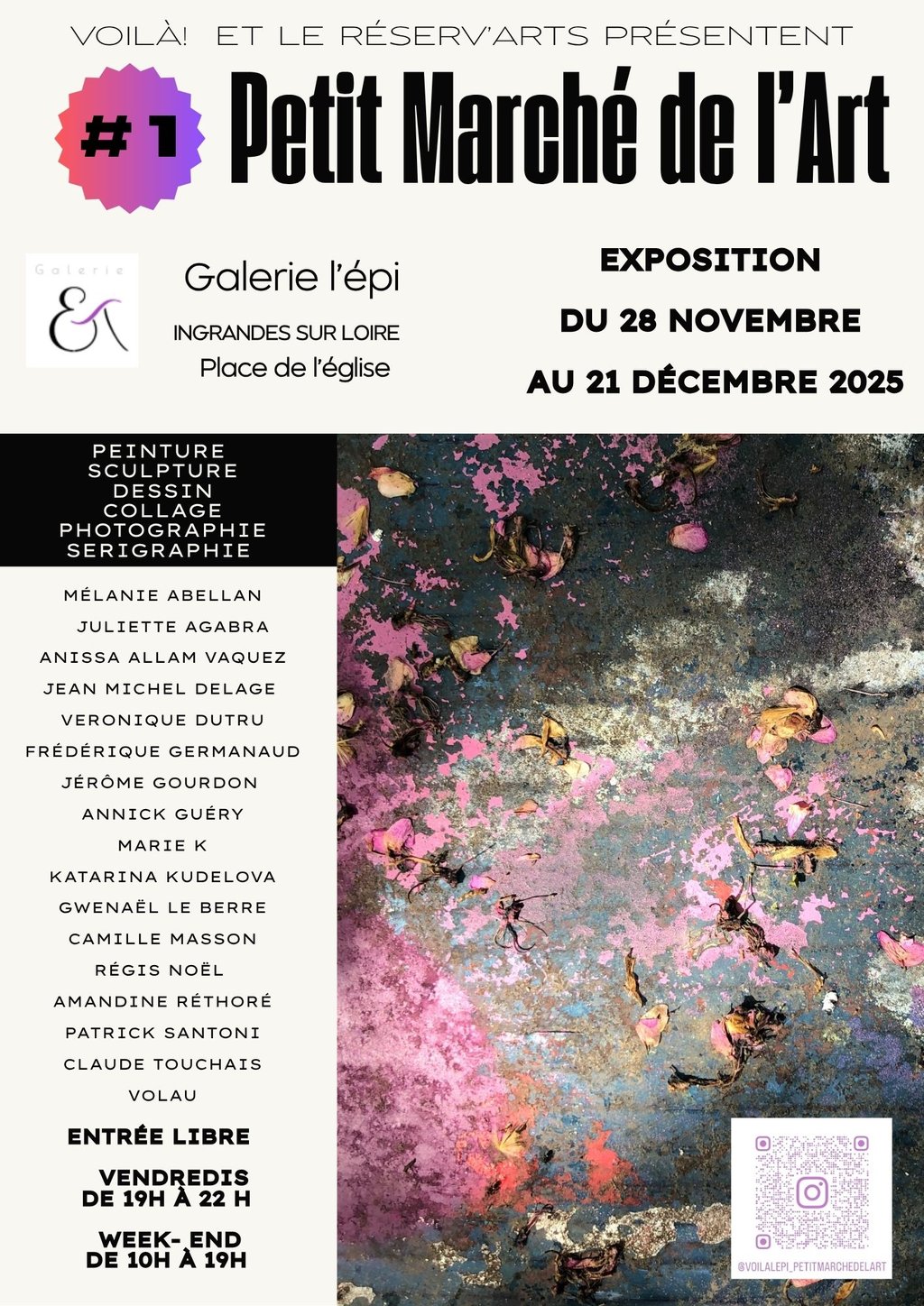 La Galerie l’épi accueille le 1er Petit Marché de l’Art organisé par VOILÀ! et Le Réserv’Arts du 28 novembre au 21 décembre 2025.